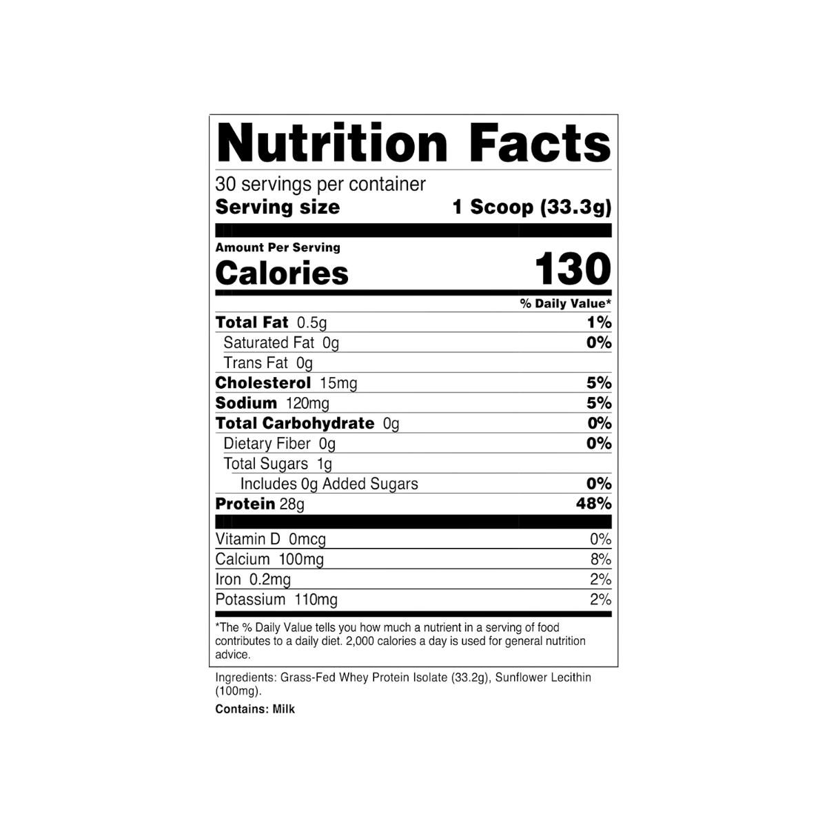 TRANSPARENT LABS® 100% Grass-Fed Whey Protein Isolate is the cleanest form of protein supplementation for health-conscious individuals and athletes alike. Packed with 28g of grass-fed whey protein isolate, this formula delivers rapidly absorbed, highly bioavailable protein to support muscle growth, faster recovery, and improved body composition. Free from artificial sweeteners, preservatives, food dyes, and fillers, this premium protein is sourced from grass-fed cattle raised without hormones, ensuring superior quality and digestibility. With 14+ delicious flavors—plus an unflavored option—this protein mixes easily into shakes, recipes, or smoothies for a versatile and convenient way to meet your daily protein goals.