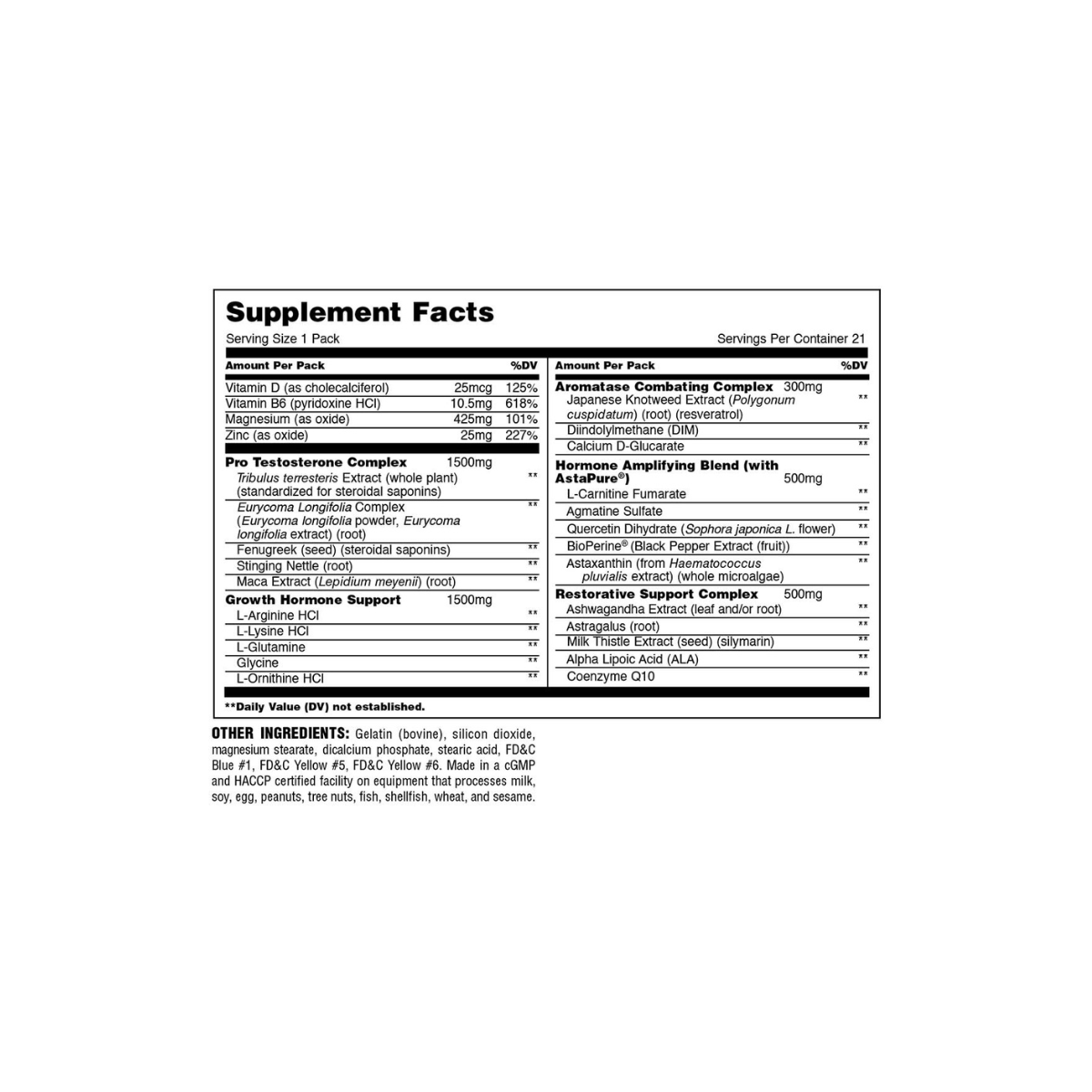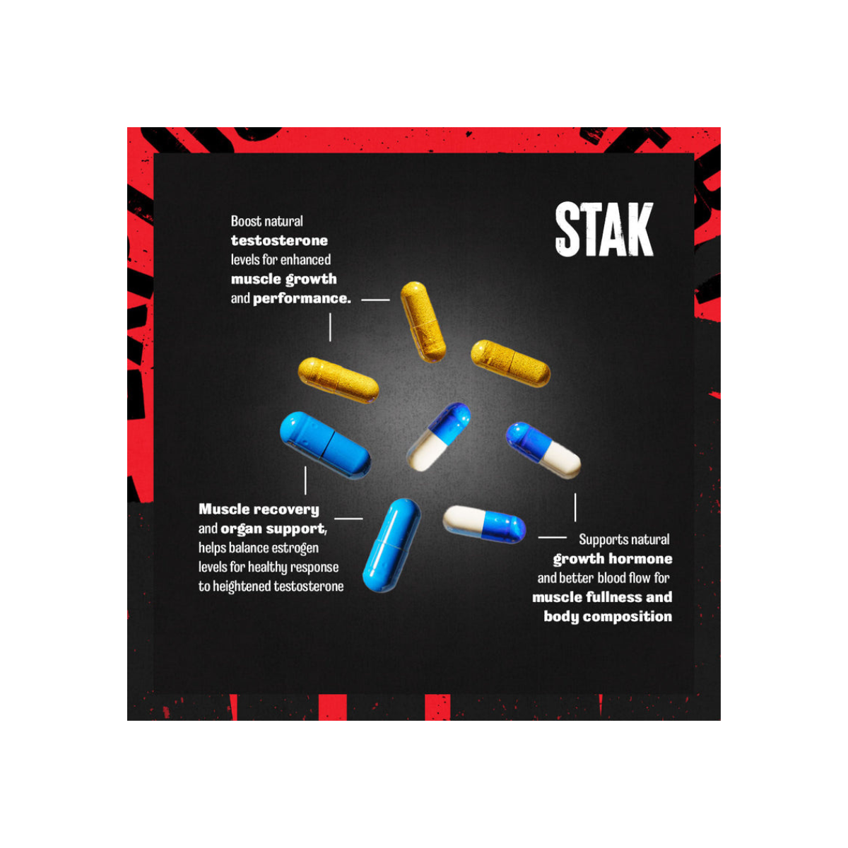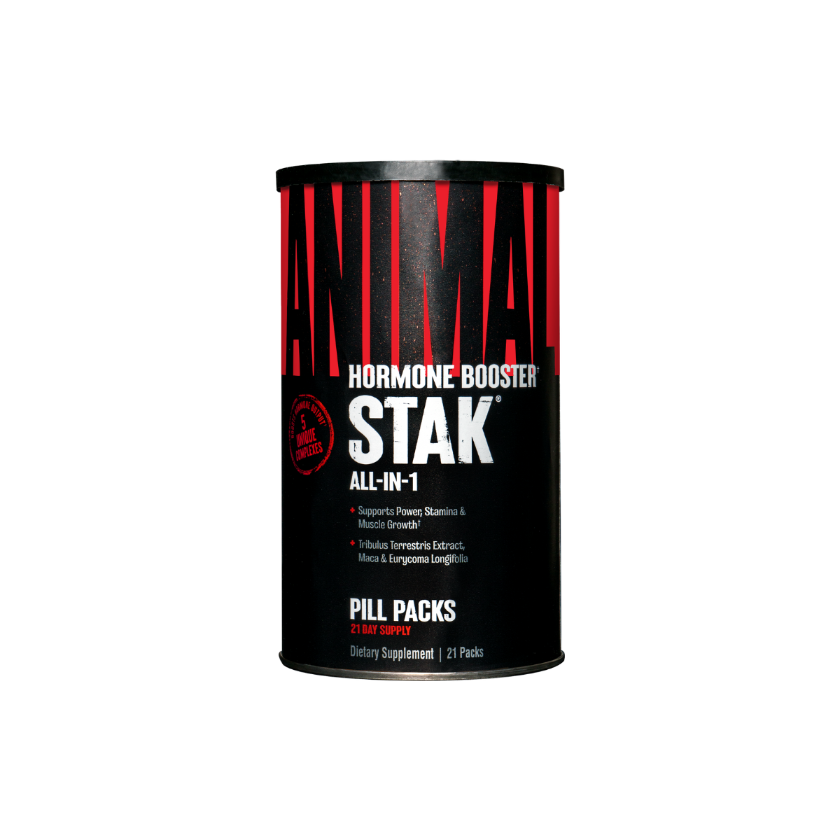 ANIMAL Stak is a comprehensive natural anabolic performance booster crafted for bodybuilders and elite strength athletes pushing to break through plateaus. Packed with five specialized complexes, including a Pro Testosterone Complex featuring Tribulus Terrestris, Eurycoma Longifolia, and Maca Root, plus a Growth Hormone Support Matrix and Hormone Amplifying Blend, Animal Stak is designed to elevate natural testosterone and GH levels for increased muscle mass, strength, energy, and vitality. Its Aromatase Combating Complex helps balance estrogen, while a Restorative Support Complex with milk thistle, ashwagandha, and Co-Q10 supports internal recovery—giving you cleaner gains and better overall performance.