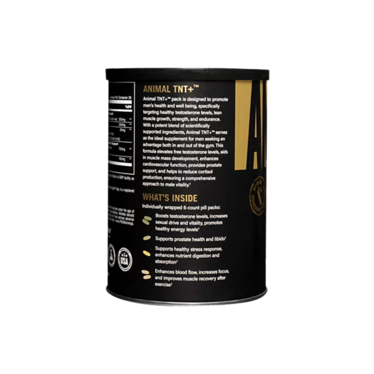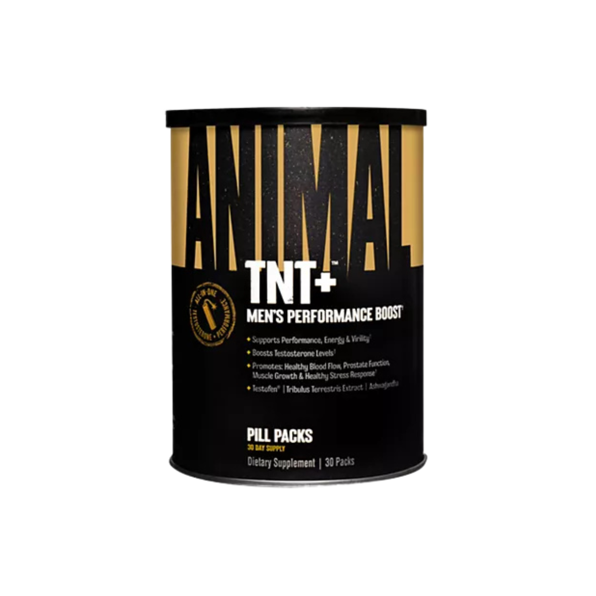 ANIMAL TNT+ is the all-in-one men’s health and performance stack crafted for those striving for dominance in and out of the gym. Featuring a powerful blend of Testofen®, Nitrosigine®, Ashwagandha, Saw Palmetto, Maca, Tribulus, and Horny Goat Weed, TNT+ is engineered to support free testosterone levels, enhance lean muscle growth, promote workout performance, and help manage everyday stress. This potent formula also supports cardiovascular health, muscle recovery, and prostate function, making it the ultimate daily pack for men committed to peak physical and mental performance.