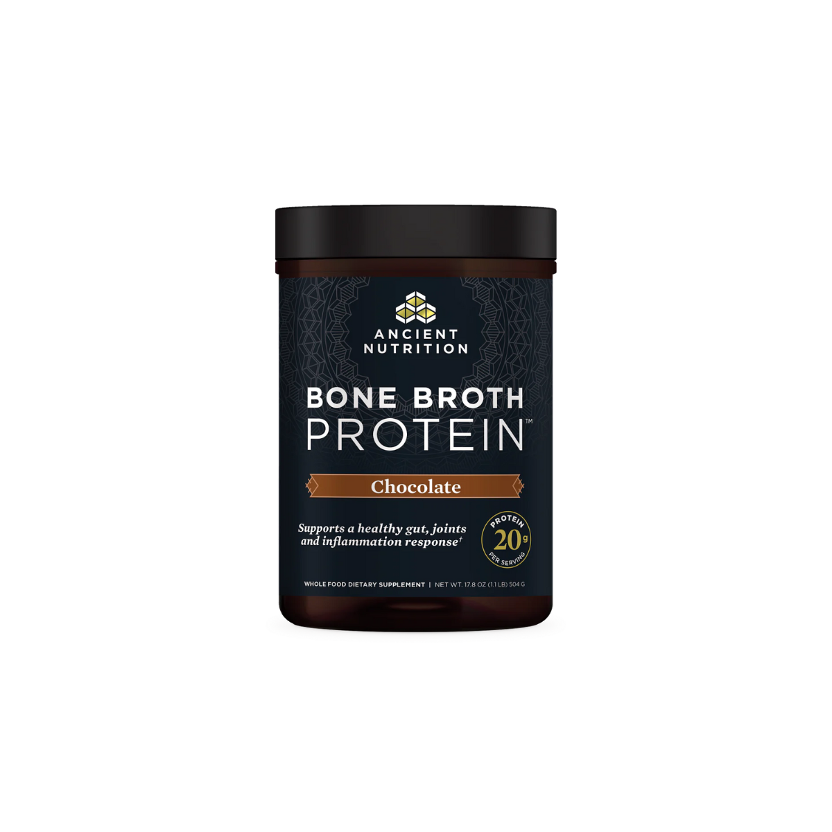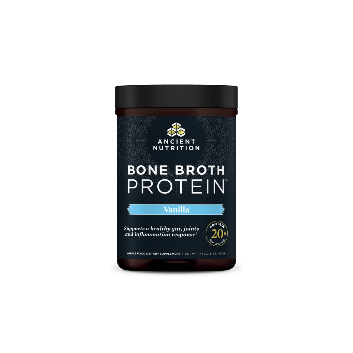 ANCIENT NUTRITION® Bone Broth Protein is a nutrient-dense, concentrated superfood delivering powerful support for gut, joint, and immune health. With 20g of protein, only 2g of carbs, this formula features both chicken and beef bone broth protein concentrates sourced from non-GMO, grass-fed, and pasture-raised animals. Each scoop provides collagen types I, II, and III, glucosamine, chondroitin, hyaluronic acid, and 18 amino acids, making it 3x more potent than homemade broth and up to 5x stronger in nutrients than leading brands. This clean, versatile powder supports healthy skin, mobility, and digestion, making it an effortless addition to smoothies, recipes, or your favorite drinks.