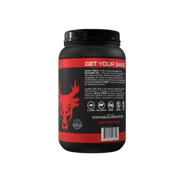 BUCKED UP® Buck Feed All Natural is formulated for those who refuse to settle for ordinary. Packed with 25g of all-natural, grass-fed, hormone-free, and antibiotic-free whey protein, this clean formula supports muscle growth, weight management, and overall performance without artificial additives.*