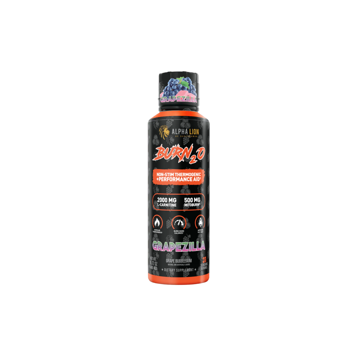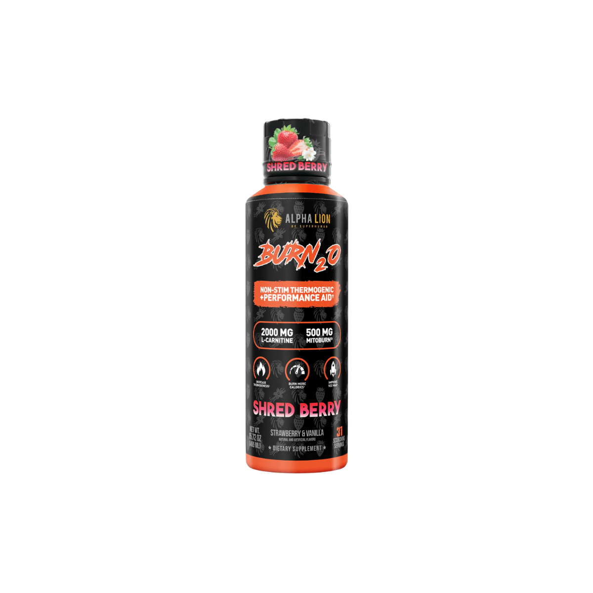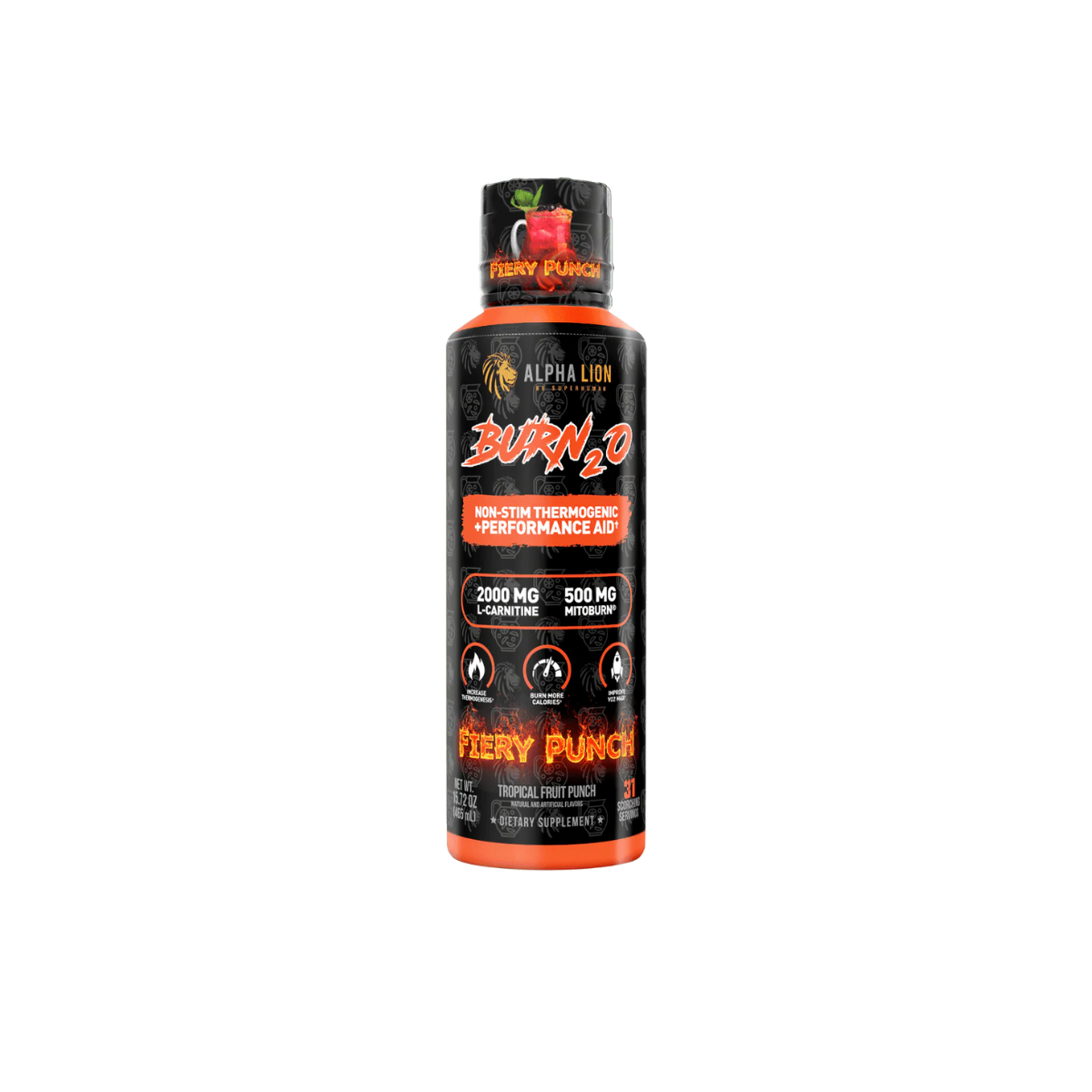 AlphaLion™ Burn2O is the world’s first and only liquid thermogenic to combine MitoBurn®, CaloriBurn®, L-Carnitine, and GBB into a delicious, zero-calorie shot. Engineered for those seeking fat-burning power without stimulants, Burn2O is a stim-free liquid thermogenic designed to increase thermogenesis, enhance VO2 max, and optimize brain function. With 31 convenient servings per bottle, it supports calorie burning, fat-to-fuel conversion, and improved athletic performance—all while boosting mental focus, without the jitters.