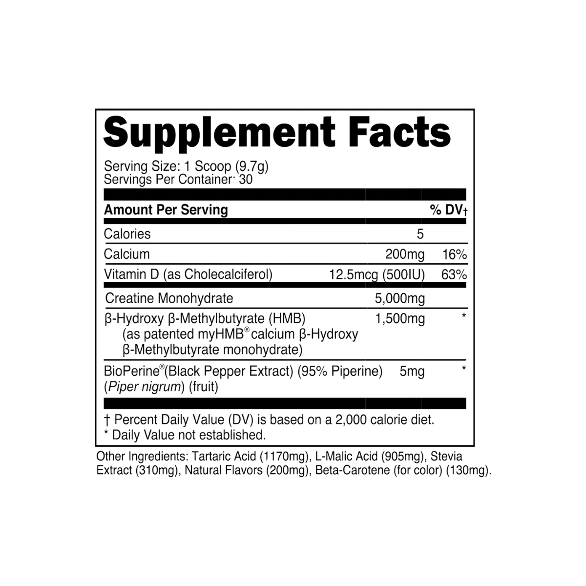 TRANSPARENT LABS® Creatine HMB is a next-generation muscle-building formula that fuses 5,000mg of creatine monohydrate, the most researched form of creatine, with 1,500mg of myHMB®, a powerful metabolite that supports recovery and helps prevent muscle protein breakdown. Fortified with 500 IU of vitamin D3 and 5mg of BioPerine® for enhanced absorption, this advanced blend delivers everything you need to support lean mass, reduce muscle damage, and improve both strength and endurance—without artificial sweeteners, colors, or preservatives.