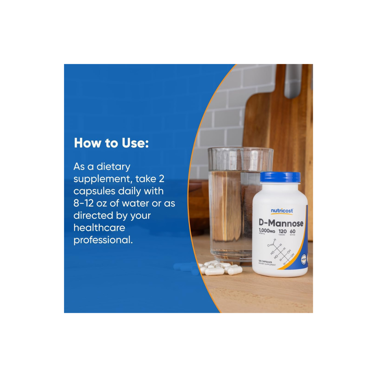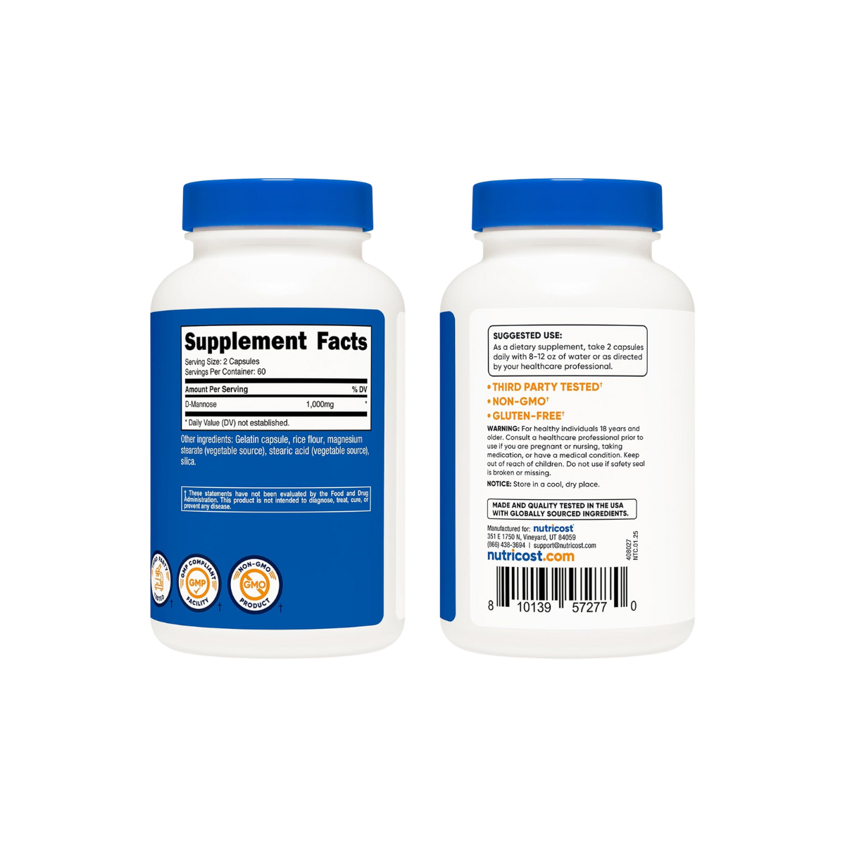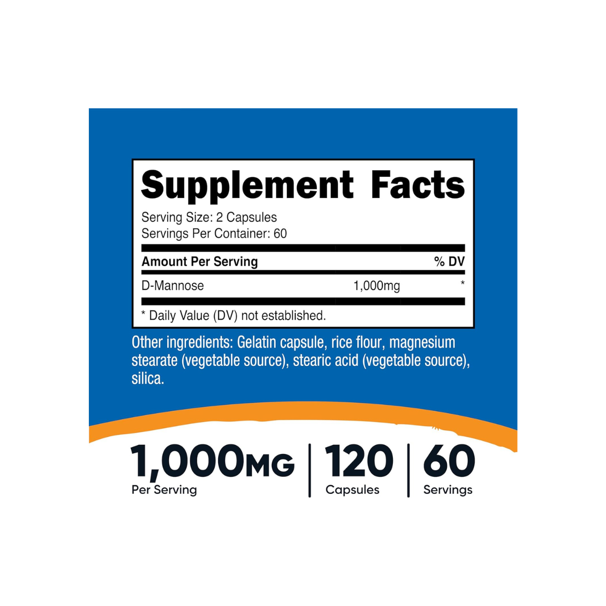 NUTRICOST® D-MANNOSE delivers powerful support for urinary tract health with 1,000mg of pure D-Mannose per serving. Each capsule is carefully formulated with 500mg of D-Mannose, making it simple and convenient to get the recommended amount in just two capsules daily. Designed to help maintain a healthy urinary system, this supplement is crafted for both quality and effectiveness, ensuring you get clean, straightforward support you can trust.