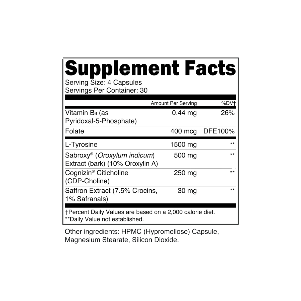 Formulated with clinically studied, patented ingredients like Cognizin® and Sabroxy® for quality and efficacy.