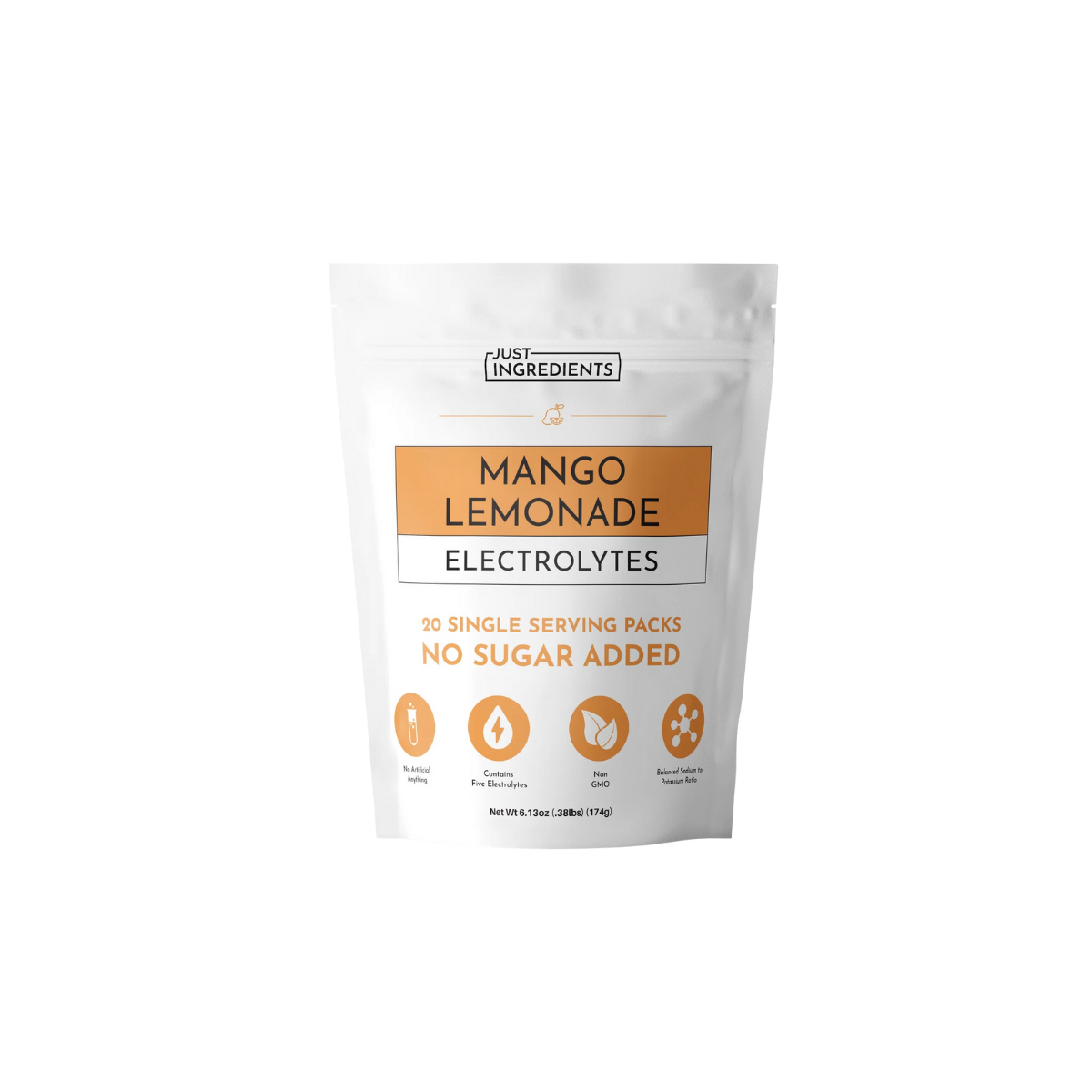 JUST INGREDIENTS® Electrolytes Serving Packs are a clean, convenient solution for effective hydration—powered by nature. Each single-serve stick delivers a balanced blend of five essential electrolytes—potassium, magnesium, sodium, chloride, and calcium—flavored only with real fruit and zero added sugars or artificial sweeteners. With a 3:1 potassium-to-sodium ratio, these packs support optimal cellular hydration without the bloating or overload of high-sodium options. Perfect for athletes or anyone on the go, these easy-to-mix packets make clean hydration simple and effective.