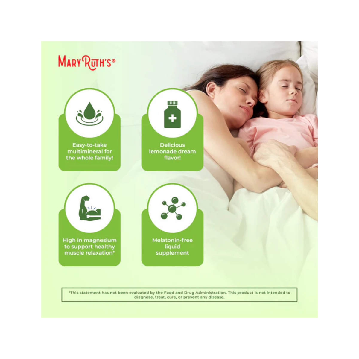 MARYRUTH ORGANICS® EXTRA STRENGTH LIQUID NIGHTTIME MULTIMINERAL is a premium, melatonin-free formula designed to help you unwind naturally. Crafted with a soothing blend of extra magnesium and calcium, along with vitamin D3, vitamin C, and other essential nutrients, this nighttime multimineral promotes relaxation, supports immune function, and aids in mineral absorption for optimal bone and muscle health. Perfect for adults and children alike, this Lemonade Dream flavored liquid delivers calm, balance, and replenishment to support a peaceful night’s rest — without added melatonin.