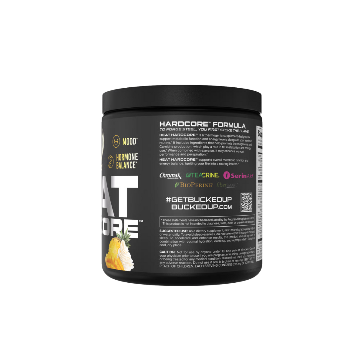 BUCKED UP® HEAT HARDCORE™ is a powerful fat-burning formula engineered for those ready to ignite their fitness results. Featuring an upgraded 275mg of caffeine, this fiery blend is designed to amplify thermogenesis, boost carnitine production by up to 300%, and accelerate metabolic function to help your body torch stubborn fat long after your workout ends. With added support for hormone balance, enhanced mood and focus during calorie deficits, and gentle water-shedding properties to help you look leaner, HEAT Hardcore is the ultimate tool to stoke your inner fire and transform your physique.