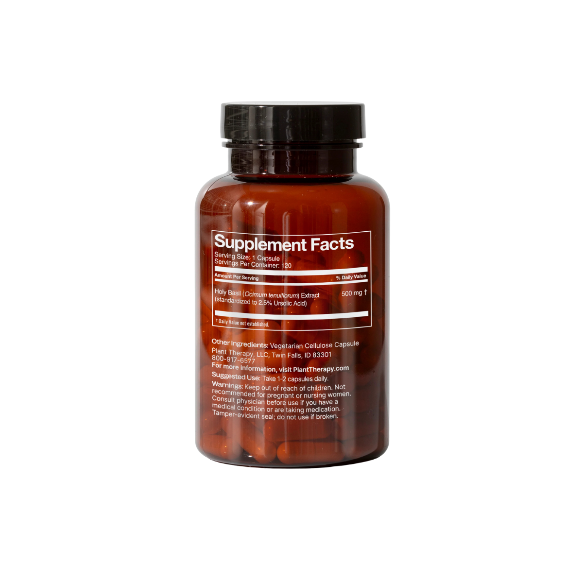 PLANT THERAPY® Holy Basil are your natural ally in the face of daily stress, fatigue, and mental tension. Each serving delivers a potent 1,500mg of Holy Basil leaf extract, standardized to 2.5% ursolic acid, a powerful compound known for its antioxidant and calming properties. This adaptogenic herb supports your body’s response to stress by enhancing GABA activity, helping to ease anxiety, improve mental clarity, and promote emotional balance. Rich in vitamins A, C, and K, as well as zinc, iron, and calcium, Holy Basil helps protect your body while supporting joint health, immune function, and cardiovascular wellness.