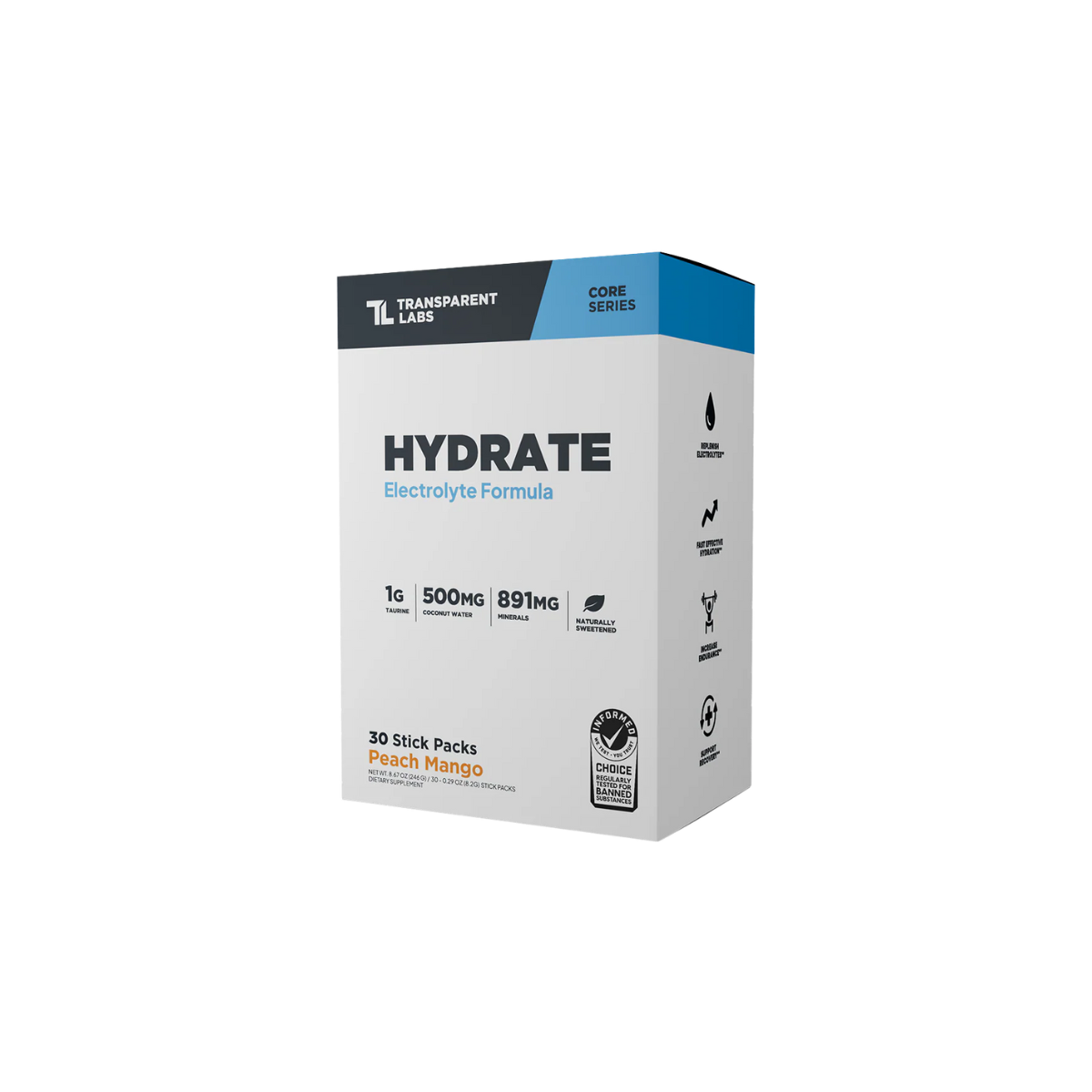 TRANSPARENT LABS® Hydrate Electrolytes is your clean, natural solution for optimal daily hydration and performance. Formulated with bioavailable electrolytes, 1,000mg of taurine, 50mg of SenActiv®, and key minerals like 84mg of calcium and 50mg of magnesium, this hydration powder helps regulate fluid balance, support muscle function, and accelerate post-exercise recovery. Sweetened with stevia and free from artificial sweeteners, coloring, and preservatives, HYDRATE is ideal for athletes and active individuals looking to stay energized, cramp-free, and performing at their peak—all without compromising ingredient integrity.