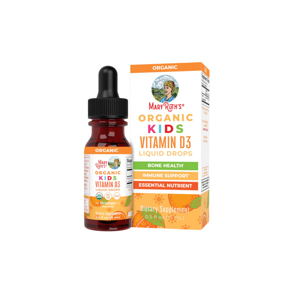 MARYRUTH’S® Organic Kids Vitamin D3 Liquid Drops deliver essential support for growing bodies in a delicious orange-flavored formula that kids love. Each serving provides vegan-sourced Vitamin D3 (cholecalciferol)derived from non-GMO lichen, helping your child absorb calcium and phosphorus to maintain strong bones, support muscle function, and boost immune health. Designed specifically for children ages 4 to 13, these easy-to-take drops are sugar-free, allergen-friendly, and thoughtfully formulated for daily wellness.