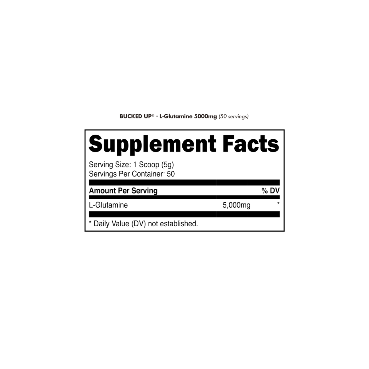 BUCKED UP® L-Glutamine is a no-nonsense recovery powerhouse designed to help athletes, fitness enthusiasts, and wellness seekers restore, rebuild, and recharge. With 5,000mg of L-Glutamine per serving, this single-ingredient formula supports muscle recovery, immune system health, and gut integrity—three pillars of total-body wellness. Whether you’re bouncing back from intense training or simply aiming to feel your best every day, L-Glutamine delivers clean, focused support where your body needs it most.