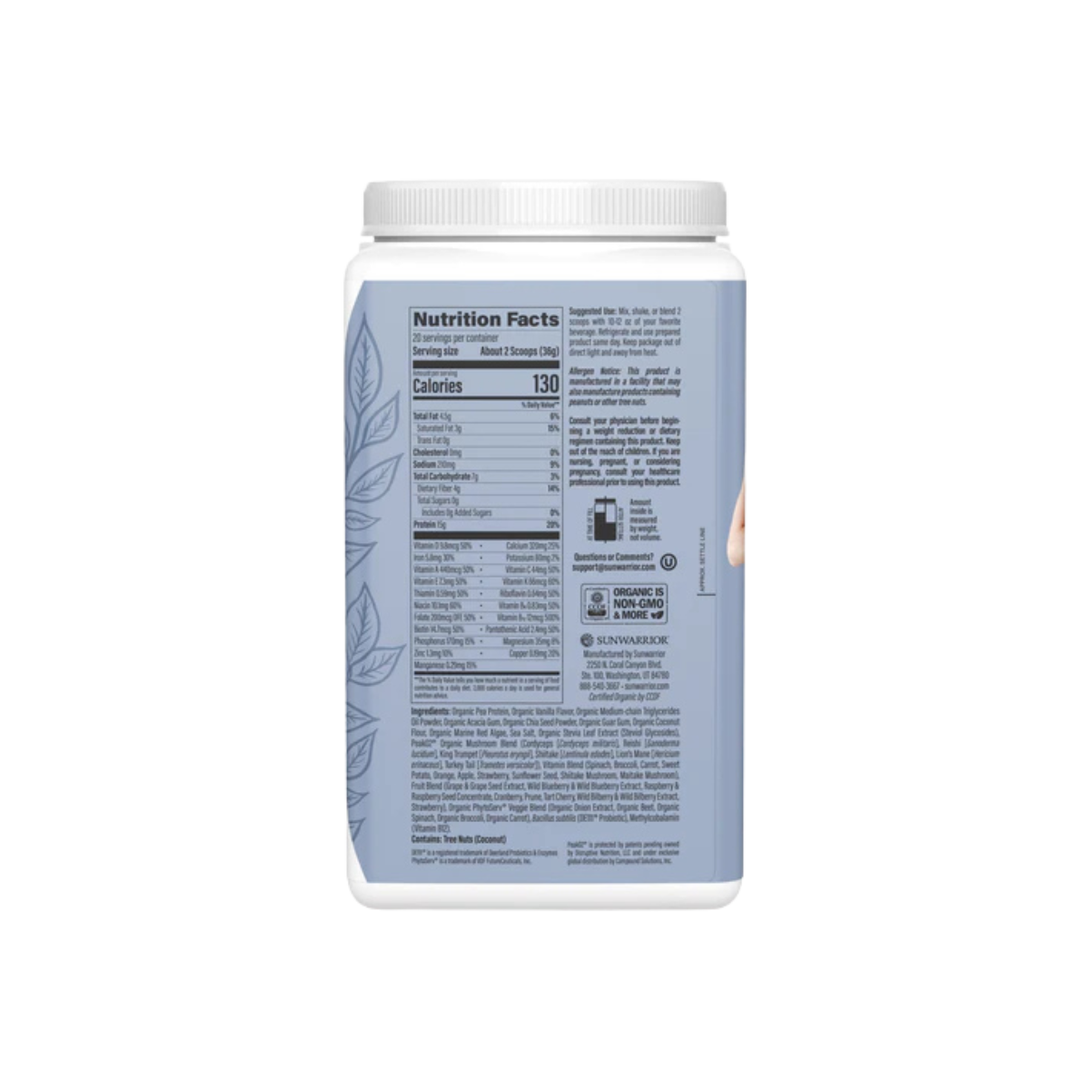 SUNWARRIOR® Lean Superfood Shake is a clinically studied, plant-based shake designed to support sustainable weight management, beauty, and overall vitality. Crafted with organic pea protein, medium-chain triglycerides, PeakO2® mushroom adaptogens, and a nutrient-rich blend of fruits, vegetables, and probiotics, this delicious vanilla-flavoredformula delivers the equivalent of a fruit and vegetable serving per scoop. With 0g added sugars, essential vitamins and minerals, and healthy fats and fiber, LEAN promotes gut health, boosts energy, supports stable blood sugar levels, and helps you stay on track with your goals—all in one convenient, vegan-friendly shake.