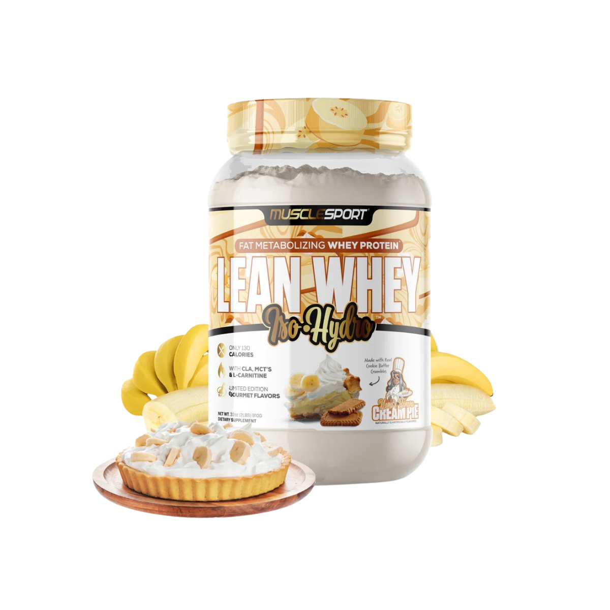 MUSCLESPORT® Lean Whey® ISO Hydro Gourmet Protein is a premium fat-metabolizing whey protein blend designed for athletes and flavor lovers alike. With 25g of high-quality whey protein isolate and hydrolyzed peptides per serving, it supports lean muscle growth, recovery, and performance without the bloating. Each scoop features a powerful matrix of L-Carnitine Tartrate, CLA, Medium Chain Triglycerides, and Fibersol® fiber to help support fat metabolism and digestive health. From iconic cereal flavors like LEAN CHARMS™ and Cinna Crunch™ to indulgent creations like Protella™ and Dippsadoodle™, Lean Whey® sets the gold standard in gourmet protein with real food inclusions and a smooth, creamy texture that mixes effortlessly.