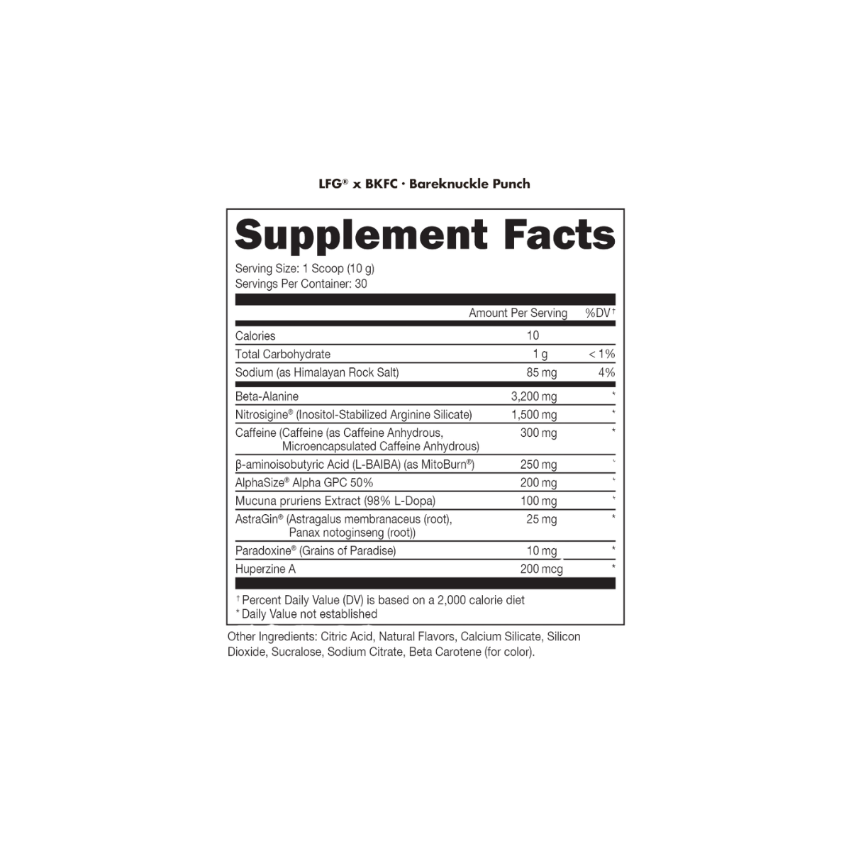 BUCKED UP® LFG Thermogenic Pre-Workout is your go-to formula for turning up the heat on fat loss and focus. Engineered for serious athletes and dedicated fat-burning warriors, LFG delivers 300mg of caffeine for clean energy, 3,200mg of beta-alanine to push VO₂ max, and 1,500mg of Nitrosigine® to supercharge blood flow and endurance. Thermogenic firepower comes from innovative ingredients like 250mg of Mitoburn™, 10mg of Paradoxine®, and 200mg of AlphaSize®, all working synergistically to boost fat metabolism, cognitive sharpness, and performance. With Mucuna Pruriens, AstraGin®, and Huperzine A rounding out the formula, LFG is built for those who train hard and demand results.