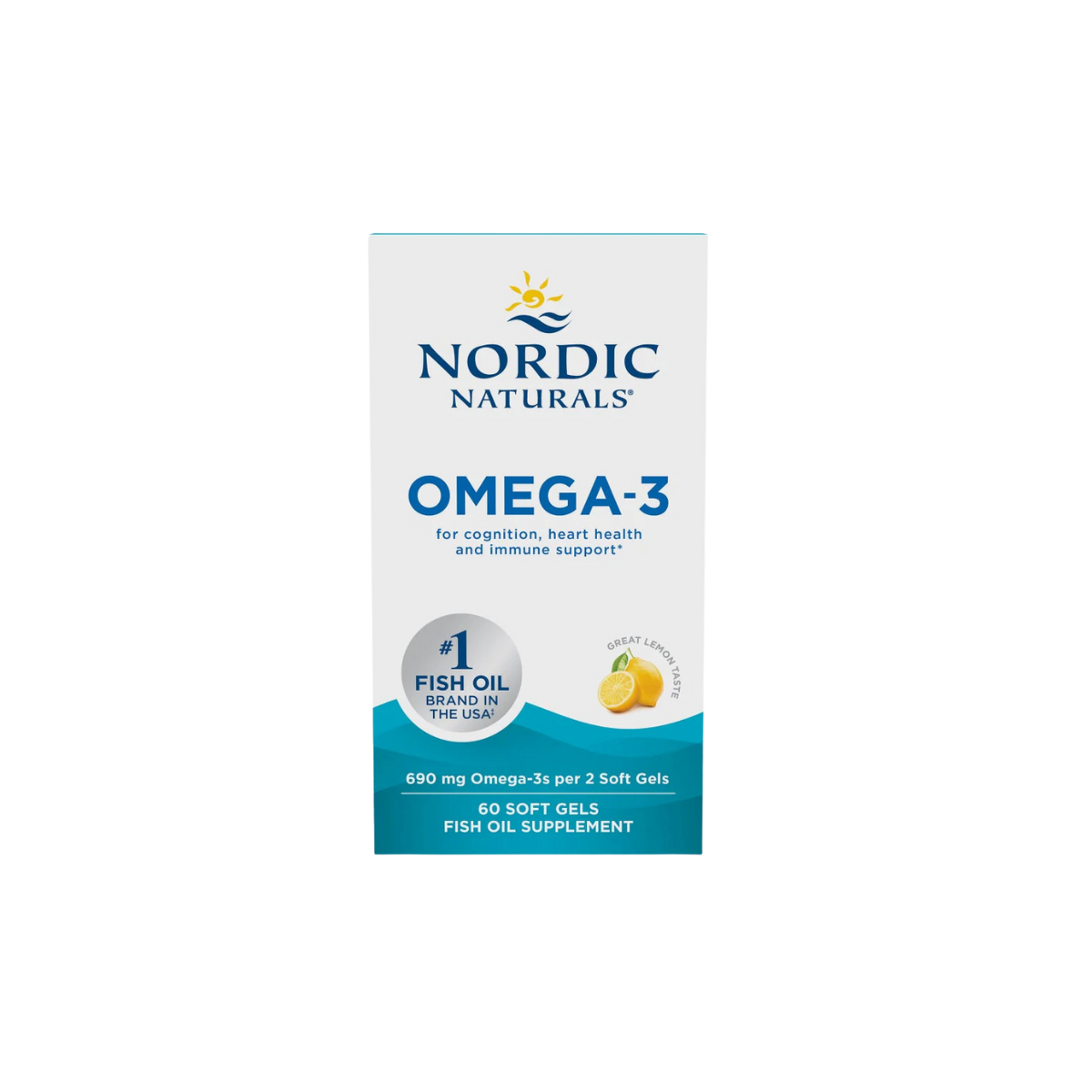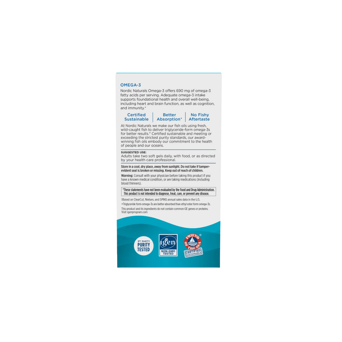 NORDIC NATURALS® Omega-3 delivers essential support for heart and brain health with a generous, non-concentrated dose of pure omega-3s in both liquid and soft gel formats. Each serving provides 690mg total omega-3s (soft gels) or 1,560mg total omega-3s (liquid), making it the perfect introduction to fish oil supplementation. Crafted from 100% wild-caught fish and enhanced with a fresh lemon taste, this formula promotes daily wellness without compromise. Winner of the Vitamin Retailer’s Vity Award and recognized as a Best Selling Essential Fatty Acid Supplement, Omega-3 is a trusted staple for foundational health support.