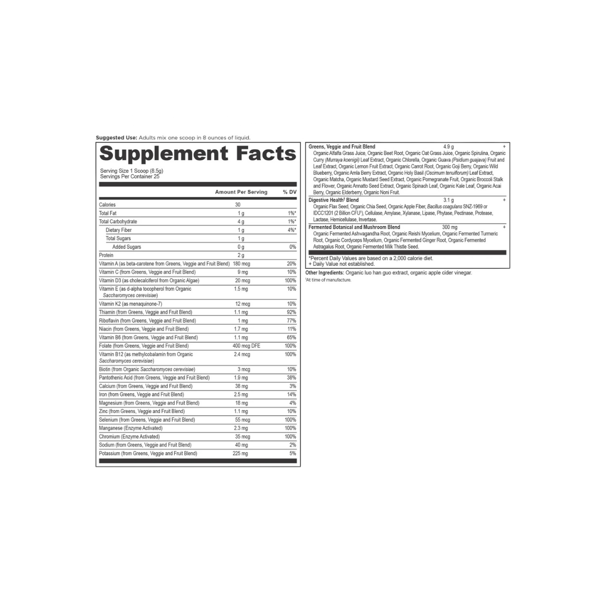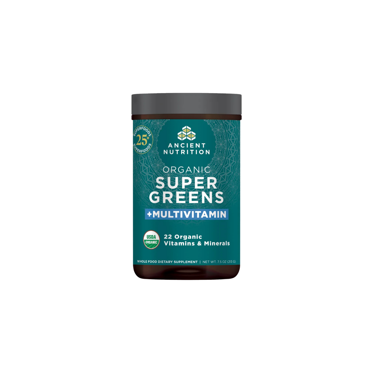 ANCIENT NUTRITION® Organic Supergreens + Multivitamin is the ultimate daily greens solution for anyone seeking to support digestion, detoxification, and foundational wellness. Packed with 25+ organic superfoods, probiotics, and a full spectrum of 22 organic vitamins and minerals, this powerful formula delivers benefits far beyond your average greens powder. With key nutrients like folate, vitamin B12, and vitamin D3, plus real organic grass juices like alfalfa and oat grass, each scoop helps maintain gut health, energy, and detoxification while reducing occasional gas, bloating, and constipation. Designed for convenience and packed with nutrients your diet alone can’t provide, it’s the easiest way to get your daily greens, and then some.