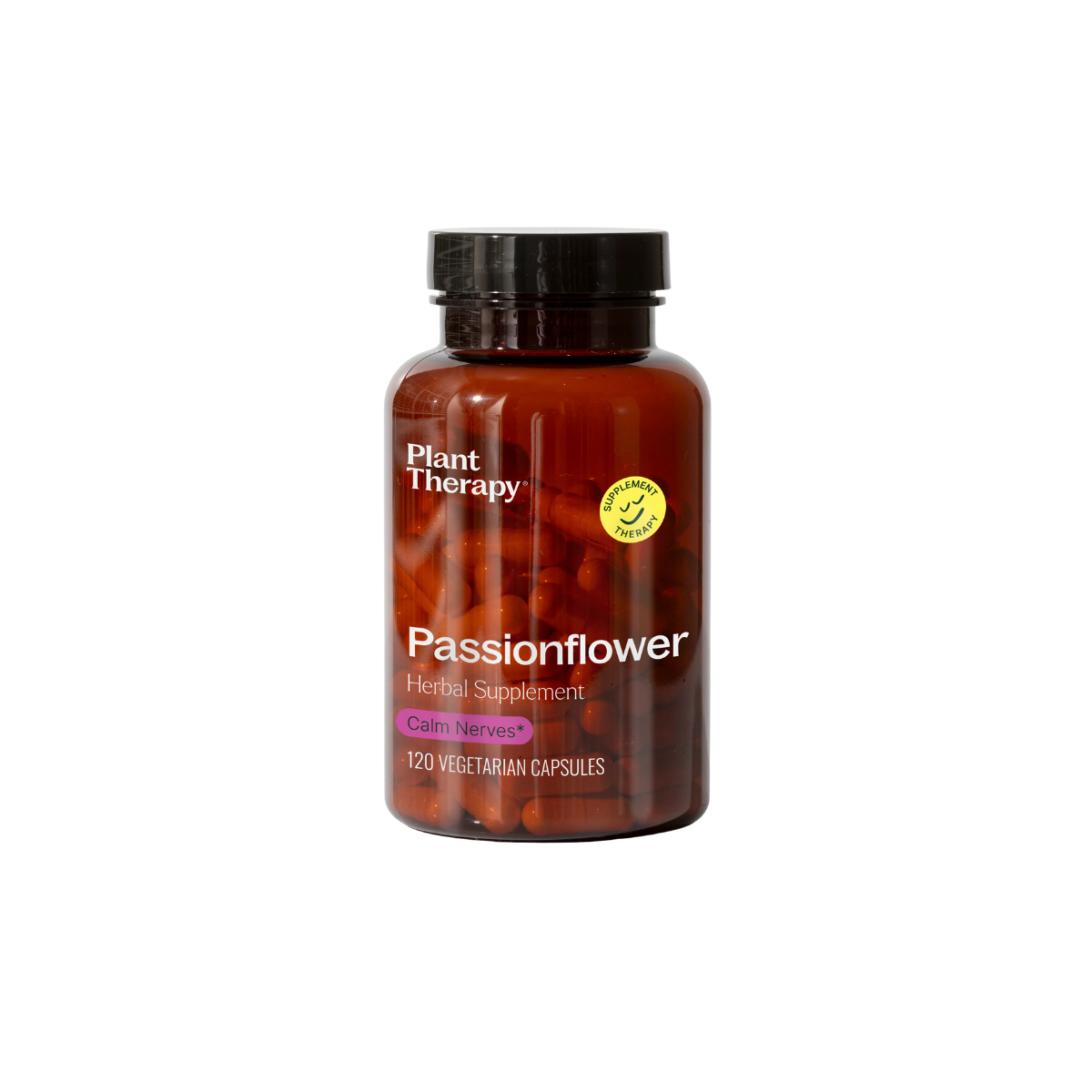 PLANT THERAPY® Passionflower offer a natural path to tranquility, helping ease tension and promote calm when life feels overwhelming. Each serving is packed with high-quality Passion flower extract, traditionally used to support healthy GABA levels, promoting relaxation and restful sleep. Whether you’re unwinding from a hectic day, seeking digestive comfort, or looking for gentle support during PMS, Passionflower’s calming and muscle-relaxant properties provide holistic, plant-powered relief. Perfect for daily stress support or a peaceful night’s rest, these vegetarian capsules are your ally in wellness—anytime you need to slow down and breathe deep.