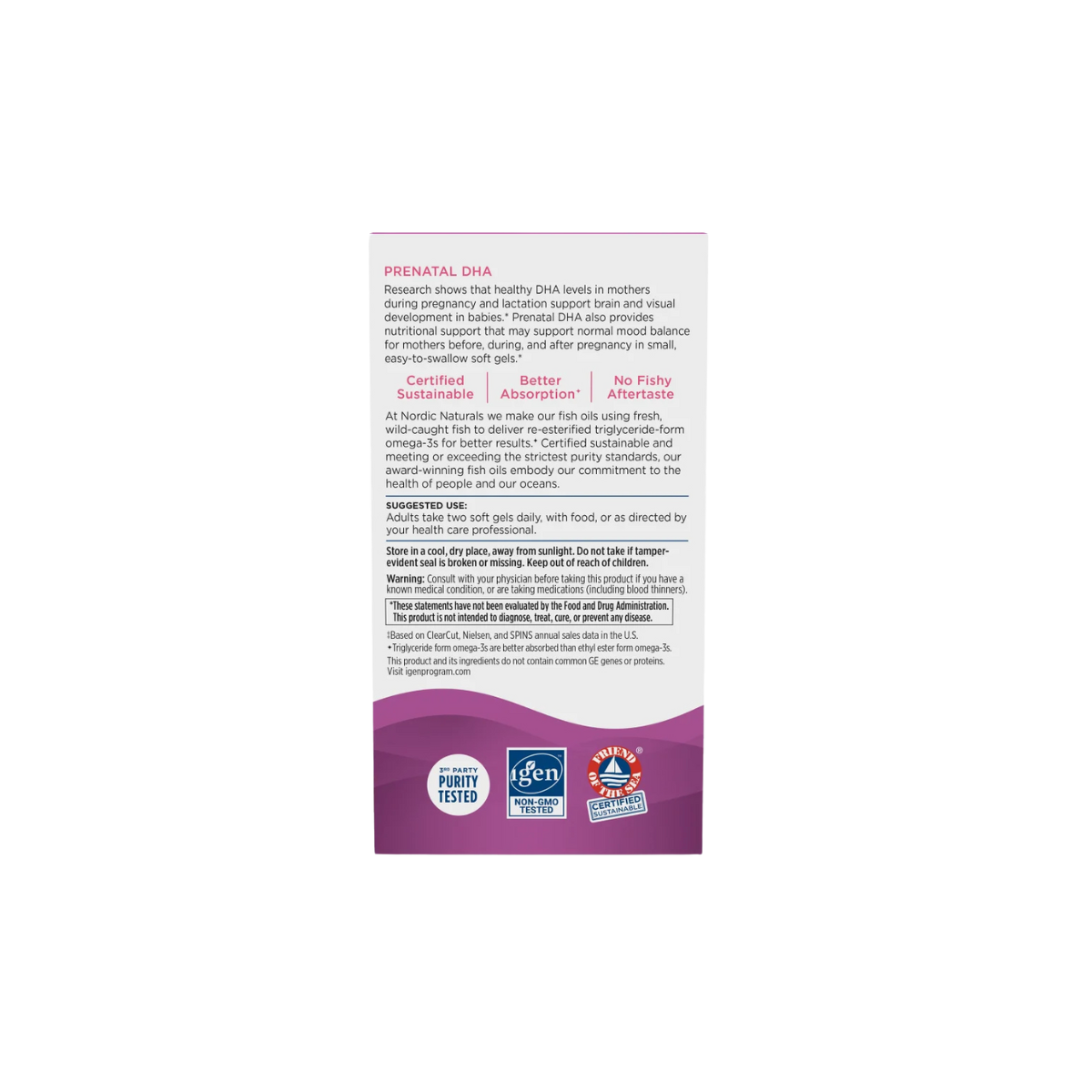 NORDIC NATURALS® Prenatal DHA delivers a pure, DHA-dominant omega-3 fish oil blend designed to support both mother and baby during pregnancy. With 830mg of total omega-3s and 400 IU of natural vitamin D3 (cholecalciferol) per serving, this award-winning formula promotes healthy brain and nervous system development in your growing baby while supporting a balanced mood, strong immunity, and overall maternal wellness.* Available in natural strawberry-flavored or unflavored, these easy-to-swallow soft gels are crafted for comfort and convenience.