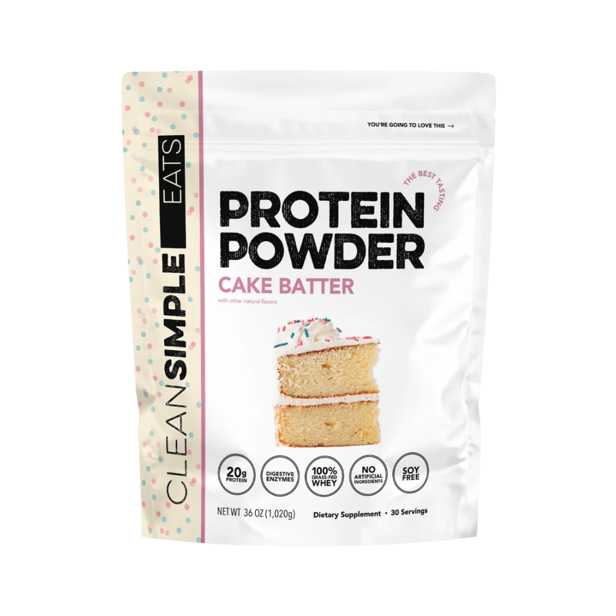 CLEAN SIMPLE EATS® PROTEIN POWDER is a smooth, creamy, and delicious way to fuel your body with high-quality nutrition. Packed with 20g of protein per serving, a specialized digestive enzyme blend, and all-natural ingredients with zero artificial flavors or sweeteners, this formula supports lean muscle growth, faster recovery, and sustained energy. With over 20 mouthwatering flavors, this versatile protein powder mixes seamlessly into smoothies, shakes, oatmeal, or pancakes—making it the ultimate daily fuel for fitness enthusiasts and busy lifestyles alike.