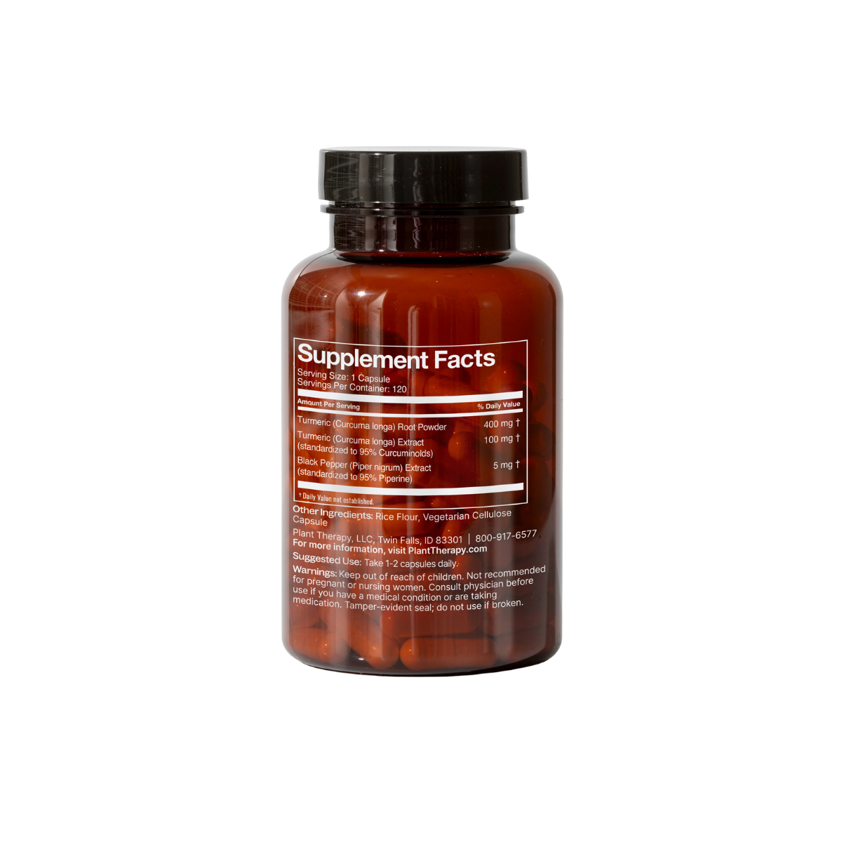 PLANT THERAPY® Turmeric with Black Pepper is a powerful daily supplement crafted to support joint comfort, muscle recovery, and overall vitality. Each vegetarian capsule delivers 100mg of Turmeric Extract standardized to 95% curcuminoids, 400mg of Turmeric Root Powder, and a precise dose of Black Pepper Extract to enhance absorption and effectiveness. This full-spectrum formula harnesses turmeric’s natural anti-inflammatory and antioxidant properties to promote joint flexibility, soothe occasional muscle discomfort, and fortify the immune system. Combined with black pepper for optimal bioavailability, this herbal duo also supports digestion and helps neutralize free radicals for daily wellness from the inside out.