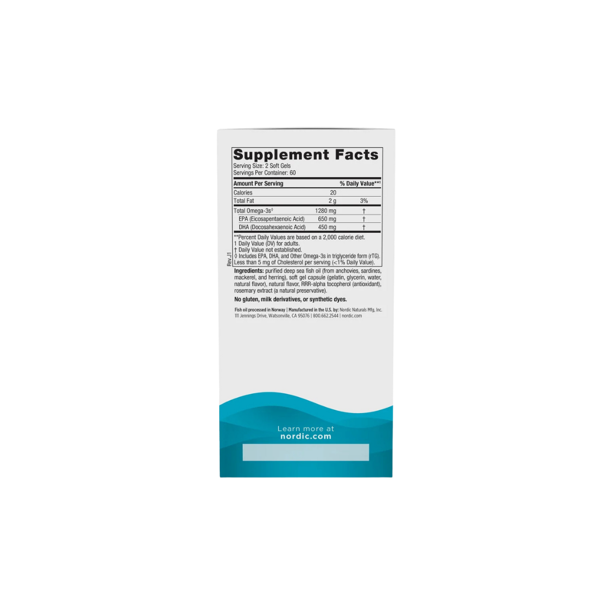NORDIC NATURALS® Ultimate Omega is the #1 omega-3 supplement in the U.S., trusted by doctors worldwide for its superior support of heart, brain, and overall wellness. Packed with a powerful 1,280mg of total omega-3s per serving in soft gel form—or an impressive 2,840mg in liquid form—this high-potency formula features re-esterified triglyceride omega-3s sourced exclusively from 100% wild-caught sardines and anchovies for optimal absorption. With over 10 industry awards, including Delicious Living’s Best Omega-3, and a refreshing natural lemon flavor, Ultimate Omega® is the go-to choice for those seeking purity, potency, and proven performance.