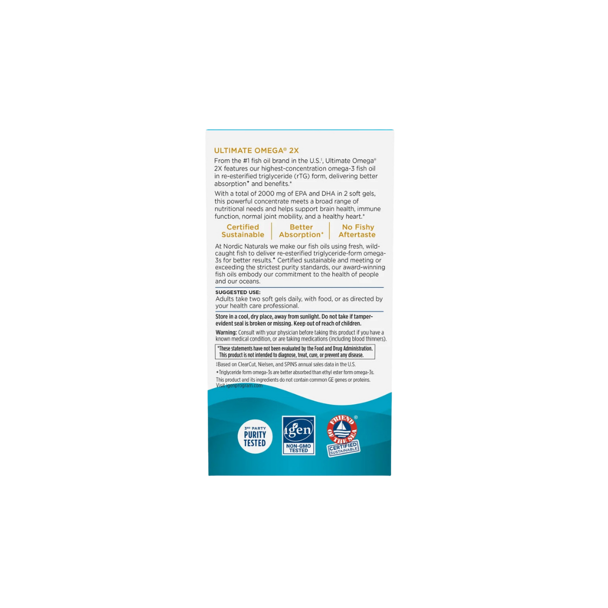 NORDIC NATURALS® Ultimate Omega 2X is the most powerful omega-3 formula from Nordic Naturals, ideal for individuals needing the highest levels of EPA and DHA to support heart, brain, and immune health—especially those whose healthcare providers recommend 2,000mg+ of omega-3s daily. Each serving delivers a potent 2,150mg of total omega-3s, offering unparalleled support for optimal wellness, cognitive function, and cardiovascular strength. Made from 100% wild-caught sardines and anchovies, this premium formula features a clean fresh lemon taste and is delivered in re-esterified triglyceride form for enhanced absorption and efficacy.