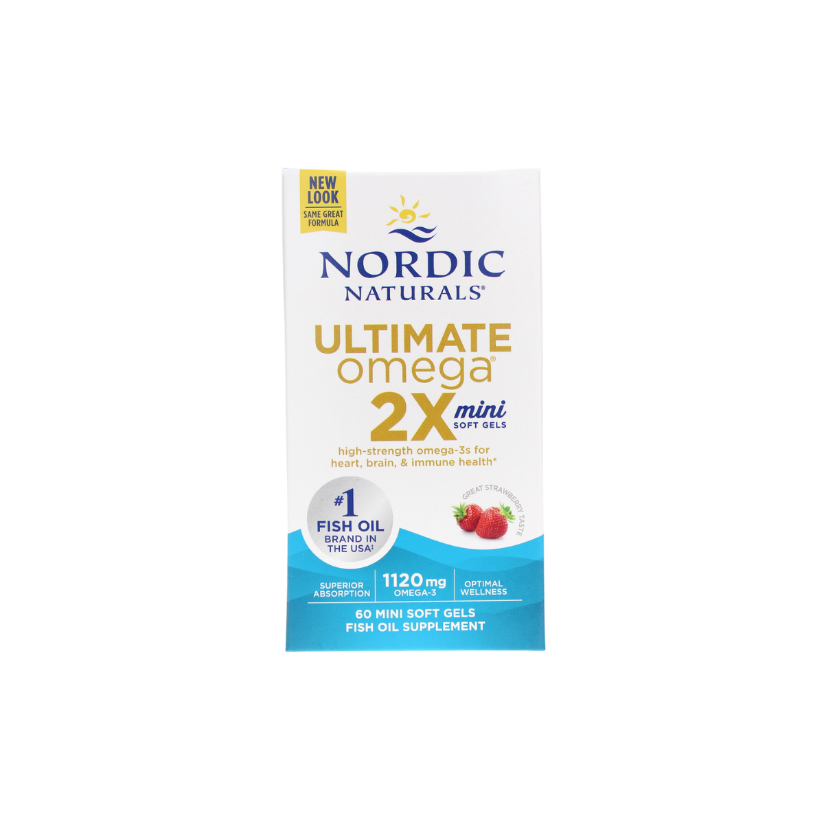 NORDIC NATURALS® Ultimate Omega 2X Mini delivers concentrated support for heart, brain, and immune health in a compact, easy-to-swallow softgel. Each daily serving of two strawberry-flavored softgels provides a potent 1,120mg of total omega-3s, including high levels of EPA and DHA, the essential fatty acids known for promoting cardiovascular function, cognitive performance, and immune resilience. Perfect for those seeking maximum benefits in a mini size, this formula is gluten-free, lactose-free, low-carb, sugar-free, and Paleo-friendly.