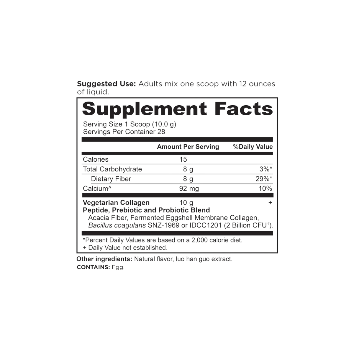 ANCIENT NUTRITION® Vegetarian Collagen Peptides is a revolutionary collagen supplement designed for those seeking comprehensive beauty and joint support, without compromising their vegetarian lifestyle. Featuring clinically studied fermented eggshell membrane collagen, 2 billion CFU of Bacillus coagulans SBO probiotics, and gut-friendly acacia prebiotic fiber, this powerhouse formula supports healthy hair growth, skin firmness and elasticity, and joint flexibility, while also promoting optimal digestion and gut health. With just one scoop daily, it’s easy to mix into your routine, whether in coffee, smoothies, or baked goods.
