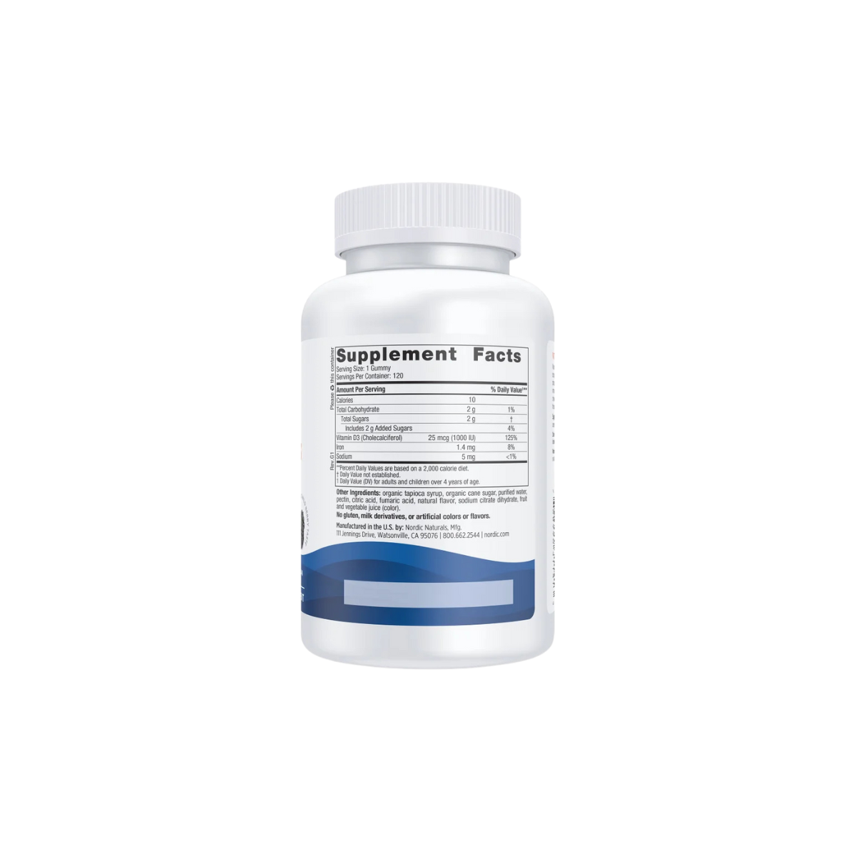 NORDIC NATURALS® Vitamin D3 Gummies offer a delicious and convenient way to support your daily wellness routine. Each wild berry flavored, gelatin-free gummy delivers 1,000 IU of Vitamin D3, formulated to promote strong bones, balanced mood, and a resilient immune system. Made without artificial coloring, flavoring, or preservatives, and free from dairy and gluten, this vegetarian-friendly supplement is perfect for adults seeking a clean, effective source of Vitamin D3.